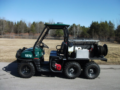 2007 Polaris Ranger 6x6 is an added specialty to our fleet. Since DTFD covers a large portion of the Manistee National Forest, along with numerous miles of horse trails throughout our Township, the 6x6 can go places other normal vehicles can't. It has the ability to transport 1 patient from a remote area, as well as fire suppression capabilities on large woods or forest fires. Cost per hour for this unit = $10.50. (Replacement time is based on usage.)